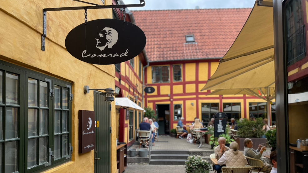 Conrads befindet sich im alten Kaufmannshof Den Smidtske Gård im südlichen Teil der Fußgängerzone. Die gastfreundlichen Räume und der gemütliche Innenhof bieten Ruhe und Platz für ungestörte Gespräche, obwohl die geschäftige Fußgängerzone gleich nebenan liegt.